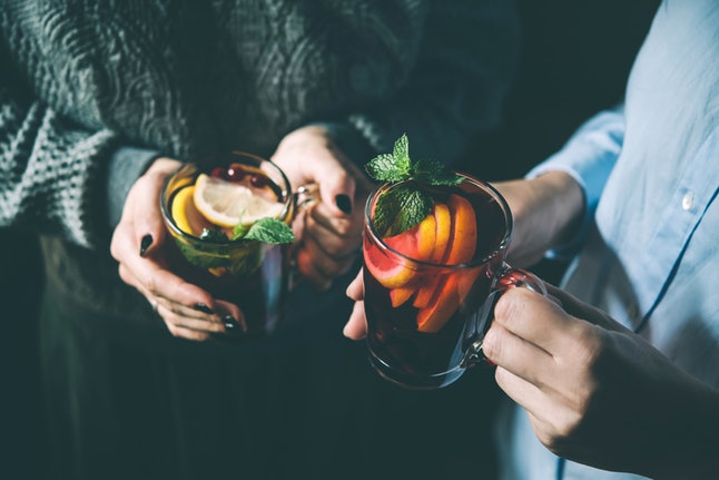 If you need a caffeine-free replacement for your usual cup of coffee, try drinking mint tea instead. “Fresh herbs and spices such as mint added to water or a mint tea warm/cold are uplifting and clear your senses,” Lisa C. Cohn, MMSc, MEd, RD, nutrition director at Park Avenue Nutrition, tells Bustle.