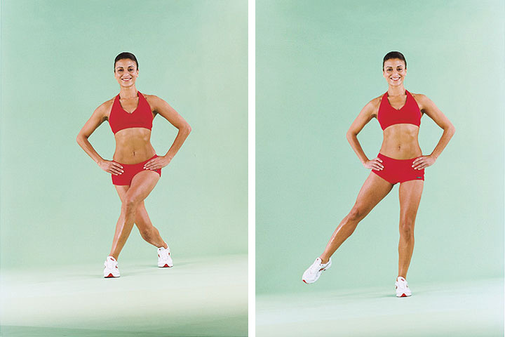 When your leg is in the 2nd step, flex your knees and hold for a second.